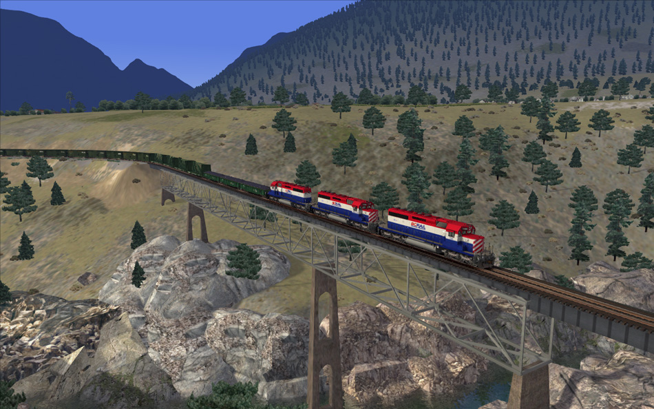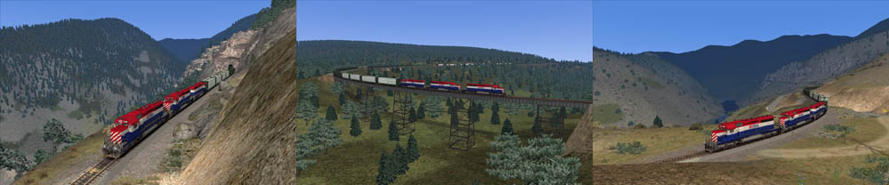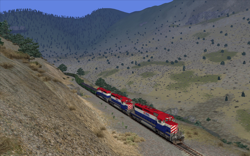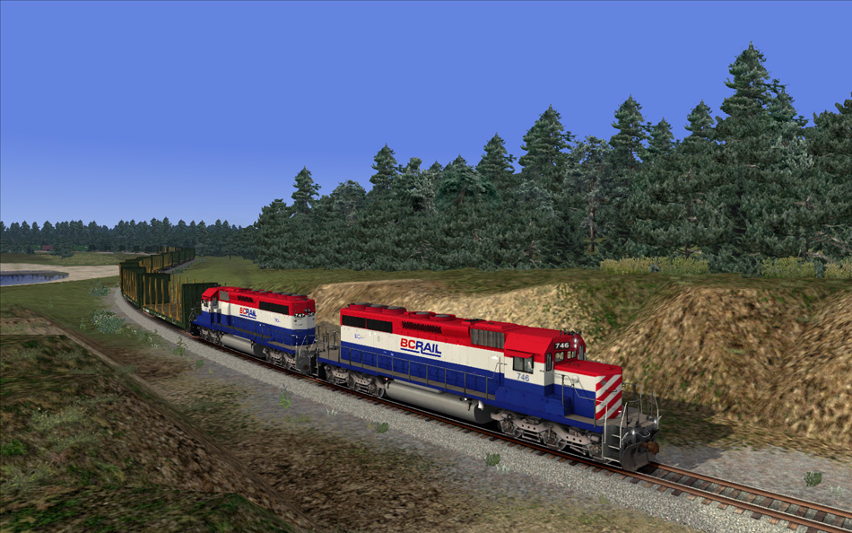 Fraser and Cariboo also includes a selection of BC Rail rolling stock exclusive to Fraser and Cariboo that would have been used on the route seen below. Some repaints of default rolling stock into BC Rail are available for free download.