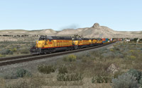A 70 mile stretch of Union Pacific mainline from Green River to Kemmerer in Wyoming set in the mid 1990s.