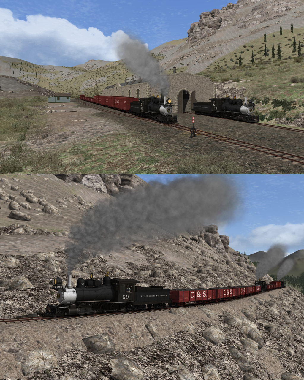 The route features a 45 mile section of the historic Atchison, Topeka & Santa Fe (AT&SF) Railway mainline over Raton Pass on the Colorado New Mexico border. The route is set in the early 1990s, the final years of the AT&SF before the BNSF merger.