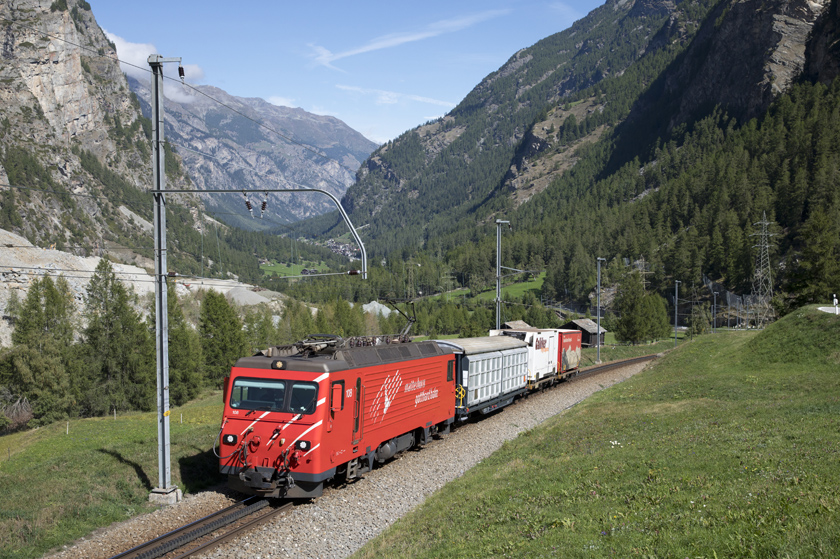 MGB HGe4/4 II 108 is seen leading freight 4231 Visp-Zermatt climning up the grade into Randa - 16/09/2025