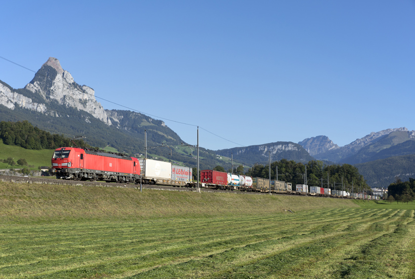 DB Vectron 193 343 is seen leading a northbound intermodal at Steinen - 18/09/2025