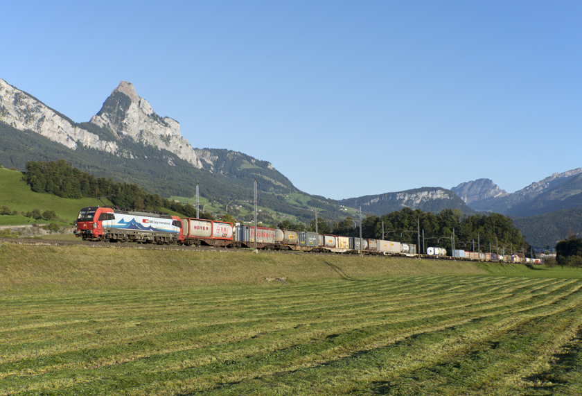SBB Vectron 193 476 is seen leading a northbound intermodal at Steinen - 18/09/2025