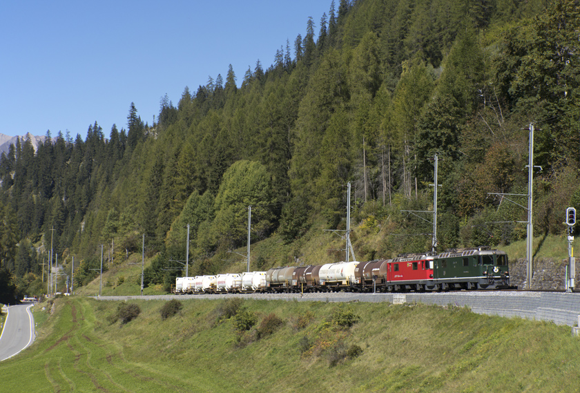 RhB Ge4/4 611 and 627 are seen leading freight 5135 Landquart-Samedan into Bergun - 19/09/2025