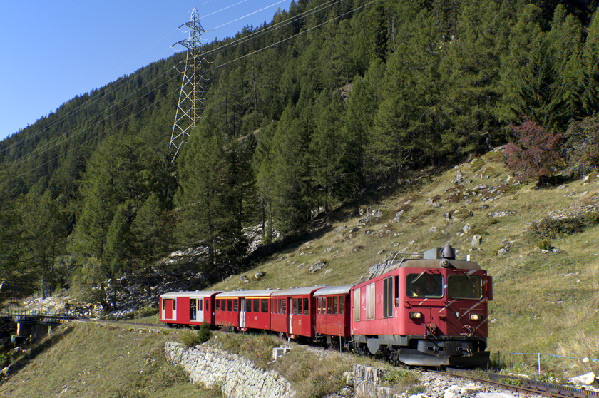 MGB HGm4/4 62 is seen leading the diesel train over the old Furka Pass leaving Oberwald - 20/09/2025
