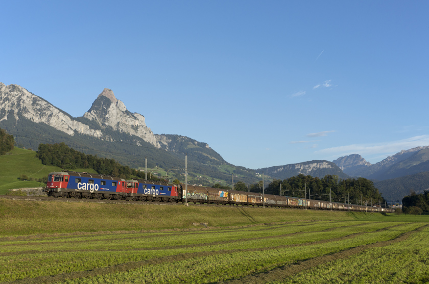 SBB Re6/6 620 074 (11674) and 620 024 (11624) are seen leading 47020 Chiasso-Weil am Rhein north at Steinen - 20/09/2025