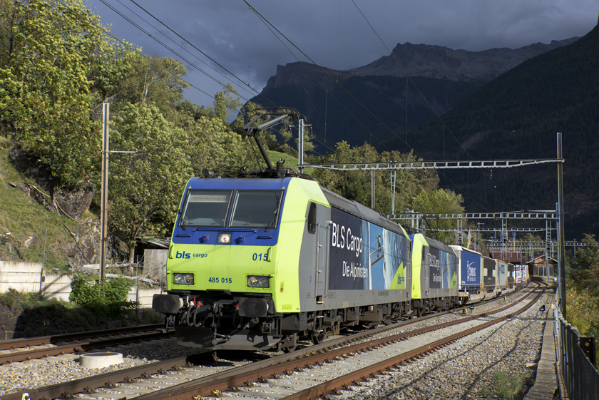 BLS Re485 015 is seen leading a northbound Intermodal at Laladen - 23/09/2025
