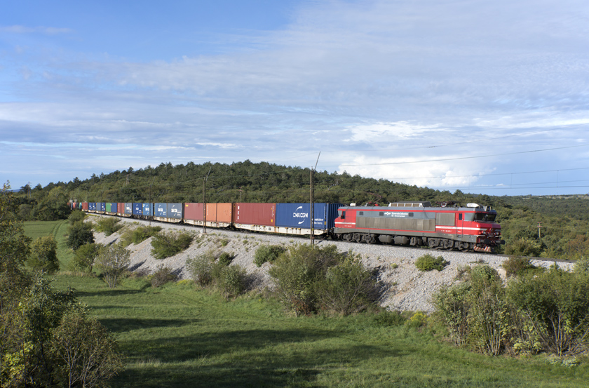 SZ 363 020 is seen leading an eastbound intermodal climbing out of Koper at Prešnica - 26/09/2025