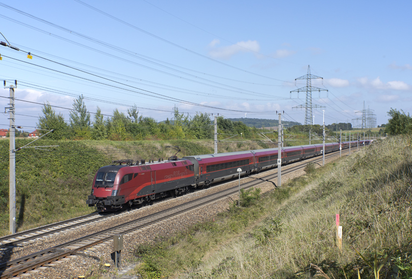 OBB 1116 250 is seen leading a westbound Railjet approaching Pottenbrunn - 27/09/2025