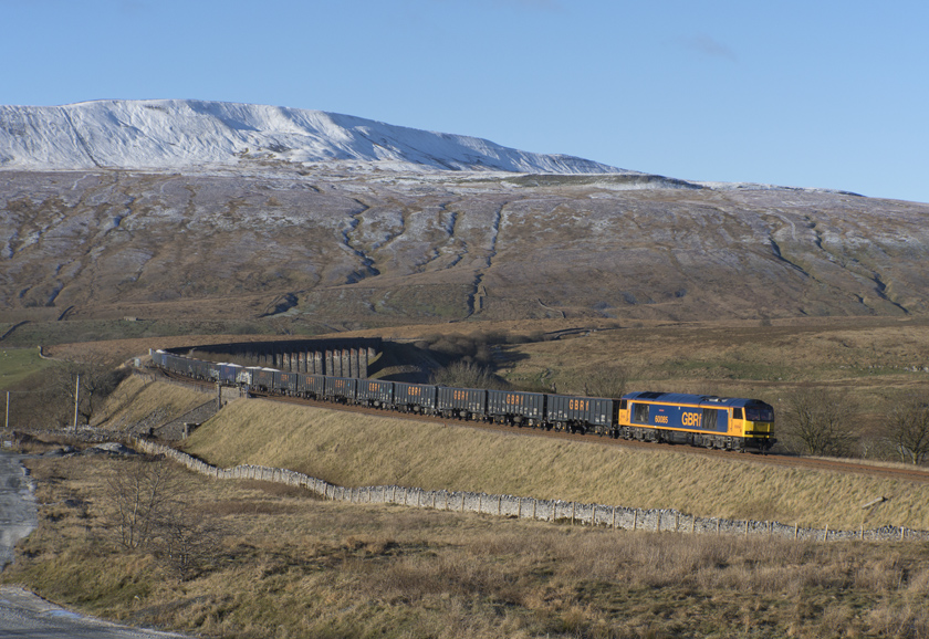 60085 'Snowdon' is seen leading 6J84 Horton-Bridle Hearth south at Ribblehead - 20/11/2025