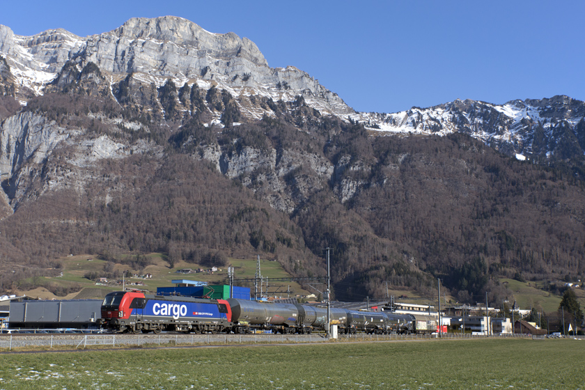 SBB Cargo Vectron 193 051 is seen leading 63220 Chur-Zurich RBL west at Walenstadt - 19/01/2026