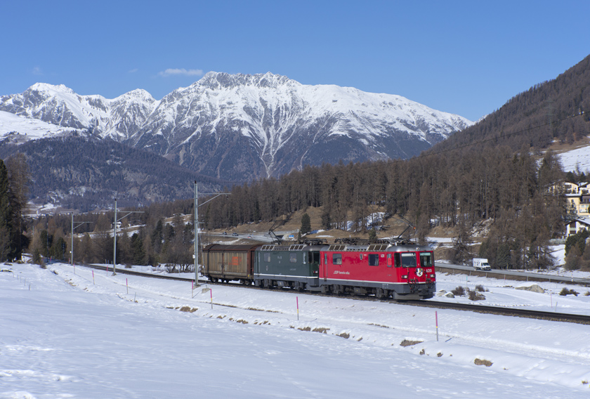 RhB Ge4/4 II 620 and 611 are seen leading a short freight 5135 Landquart to Pontresia its destination - 20/01/2026