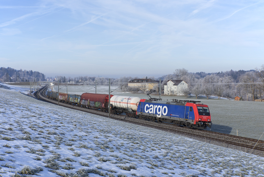 SBB Re484 019 is seen leading 63161 Zurich RBL-St. Margrethen east at Gossau - 22/01/2026