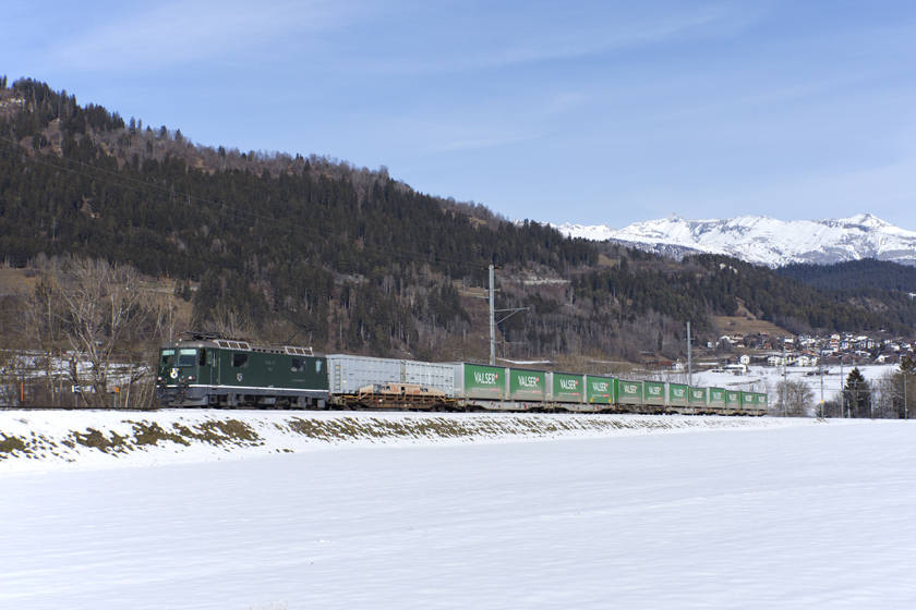 RhB Ge4/4 II 611 is seen leading freight 5737 Landquart-Ilanz west at Castrisch - 22/01/2026