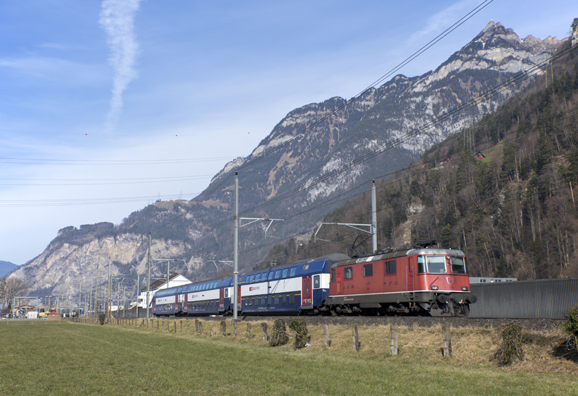 SBB Re4/4 II 11164 is seen working a Zurich S Bahn stock move from Zurich to Bellinzona between Flüelen and Altdorf - 23/01/2026