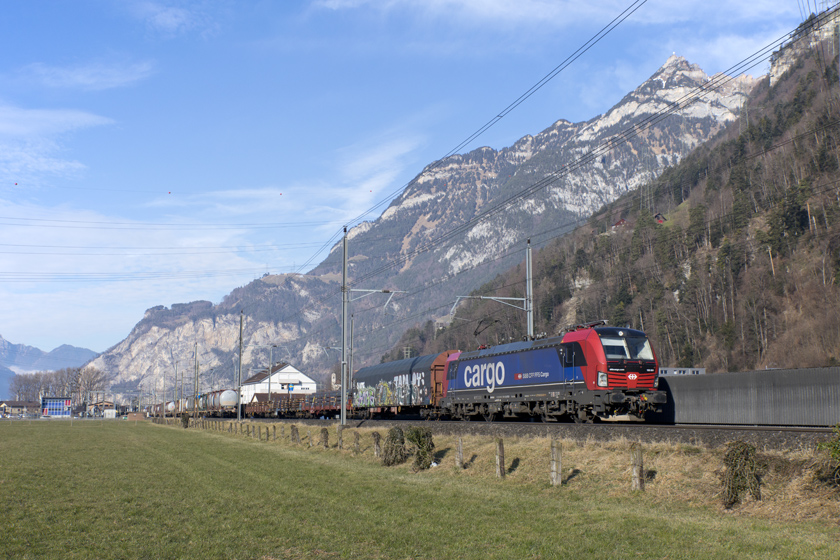 SBB Cargo Vectron 193 061is seen leading a southbound freight between Flüelen and Altdorf - 23/01/2026
