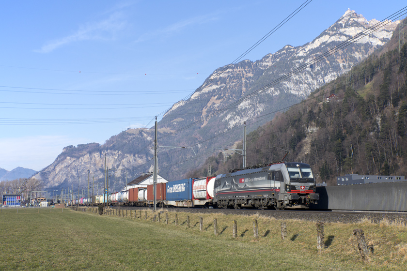 SBB Cargo International Vectron 193 541 is seen leading a southbound intermodal between Flüelen and Altdorf - 23/01/2026