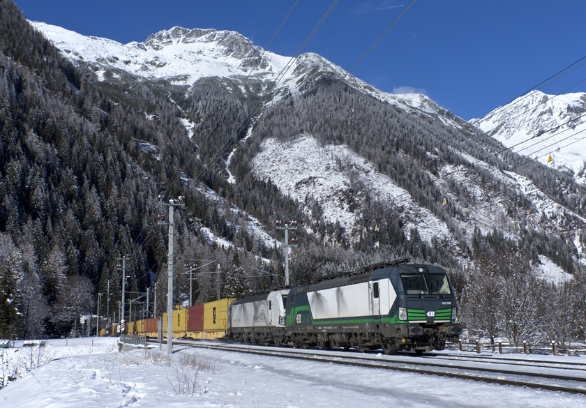 Vectron 193 206 is seen leading a southbound intermodal out of the Tauern Tunnel the nearing Mallnitz - 26/01/2026