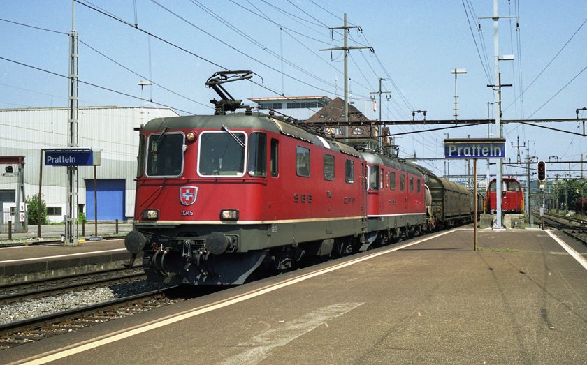 SBB Re4/4 II 11345 with 11601 is seen passing Pretteln on a northbound freight - 21/7/2000