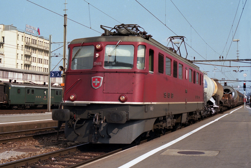 SBB Ae6/6 11466 is seen passing Geneva on a freight - August 1998