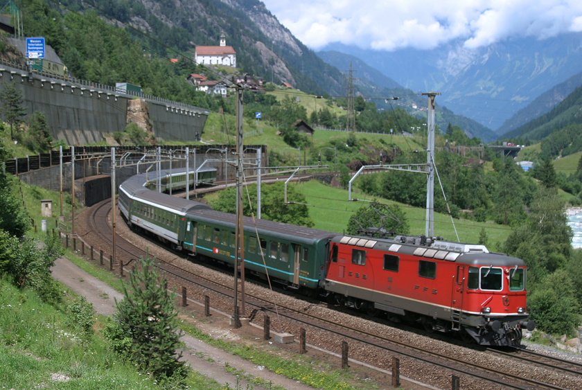 SBB Re4/4 II 11114 is seen leading a southbound service at Wassen - 8/7/2006