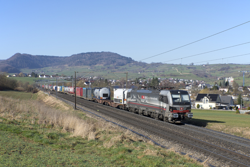 SBB Cargo International Vectron 193 471 is seen leading a eastbound intermodal at Frick - 27/02/2026