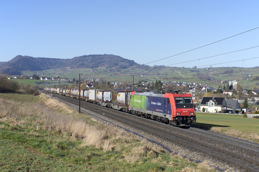 SBB Cargo 484 012 is seen leading a eastbound intermodal at Frick - 27/02/2026