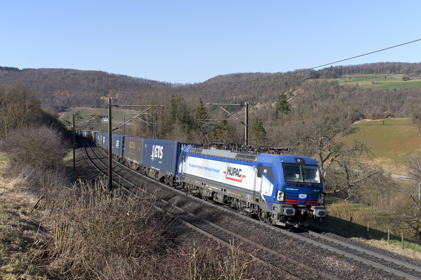 Hupac 193 493 is seen leading a eastbound intermodal at Hornussen - 27/02/2026