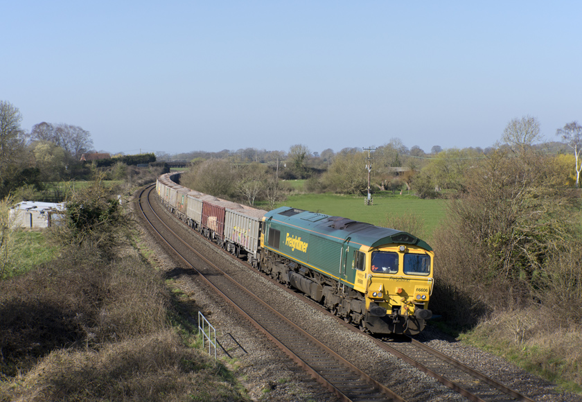 66606 is seen leading 6A12 Whatley-Appleford east at Great Cheverell - 19/03/2026