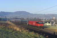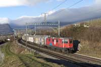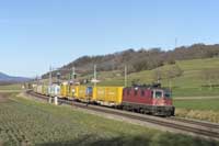 Akiem 186 910 is seen leading a matching eastbound intermodal at Hornussen - 27/02/2026 |  SBB Cargo International Vectron 193 451 is seen leading a eastbound intermodal at Hornussen - 27/02/2026 |  SBB Cargo Vectron 193 065 is seen leading 60185 Basel RB-Chiasso east at Hornussen - 27/02/2026 |  Widmer Rail Services (ex DB) 193 302 is seen leading a eastbound tank train at Hornussen - 27/02/2026 |