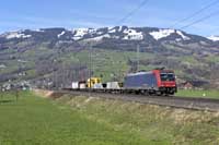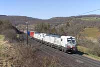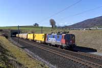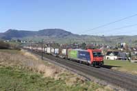 Beacon Rail 185 995 is seen leading a eastbound intermodal at Hornussen - 27/02/2026 |  SBB Cargo 484 005 is seen working 60125 Basel RB-Zurich RBL east at Frick - 27/02/2026 |  SBB Cargo International Vectron 193 542 is seen leading a eastbound intermodal at Frick - 27/02/2026 |  DB Vectron 193 346 is seen leading a eastbound intermodal at Frick - 27/02/2026 |