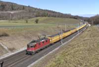 SBB Cargo International Vectron 193 532 is seen leading a southbound intermodal at Steinen - 26/02/2026 |  SBB Cargo International Vectron 193455 is seen leading a southbound intermodal at Steinen - 26/02/2026 |  RhB Ge4/4 II 633 is seen leading Glacier Expres #902 Zermatt-St Moritz into Celerina - 25/02/2026 |  RhB Ge4/4 II 626 is seen leading a late Glacier Expres #920 Zermatt-St Moritz into Celerina - 25/02/2026 |