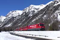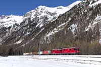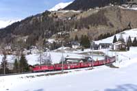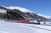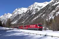 RhB Ge4/4 II 630 is seen leading the Bergun-Preda shuttle away from Bergun - 28/02/2026 |  RhB Ge4/4 III 646 is seen leading a Chur-Zermatt away from Bergun - 28/02/2026 |  RhB Ge4/4 II 611 is seen leading Glacier Express 905 09:38 St Moritz-Zermatt on the Bergun Loops - 28/02/2026 |  SBB Cargo International Vectron 193 459 is seen leading a eastbound intermodal at Hornussen - 27/02/2026 |