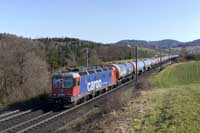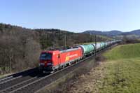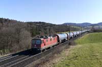 SBB Cargo International Vectron 193 558 is seen leading a eastbound intermodal at Hornussen - 27/02/2026 |  Widmer Rail Services (ex DB) 193 309 is seen leading a westbound tank train at Hornussen - 27/02/2026 |  Rhein Cargo 7193 106 is seen leading a eastbound tank train at Hornussen - 27/02/2026 |  SBB Re4/4 II 420 249 (11249) is seen leading tank train 66232 Mellingen-Basel RB west at Hornussen - 27/02/2026 |
