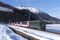 RhB Ge4/4 II 611 is seen leading Glacier Expres #902 Zermatt-St Moritz into Celerina - 28/02/2026 |  RhB Ge4/4 III 648 is seen leading a Chur-St Moritz into Celerina - 28/02/2026 |  RhB Ge4/4 II 617 is seen leading Glacier Expres #920 Zermatt-St Moritz into Celerina - 28/02/2026 |  RhB Abe 4/4 III 54 and 55 are seen working an extra train #2639 14:25 St Moritz-Tirano nearing Pontresia - 28/02/2026 |