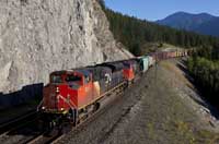 CN 8894 is seen leading #411 North Battleford-Vancouver Thornton west at Snaring between Henry House and Devona - 31/08/2013 |  CN 8949 is seen leading train #702 east at Snaring between Henry House and Devona - 31/08/2013 |  CN 8864 and 2552 are seen leading #301 Edmonton-Vancouver Thornton manifest west at English just east of Jasper, Ab - 01/09/2013 |  CN 5785 and 2453 are seen leading stack train #186 east at English leaving Jasper, Ab - 01/09/2013 |