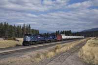 Montana Rail Link GP35 401 and 403 are seen leading the Logan Local returning from Sappington between Three Forks and Logan - 03/10/2022 |  Montana Rail Link GP35 401 and 403 are seen leading the Logan Local returning from Sappington arriving at Logan - 03/10/2022 |  BNSF ES44C4 6639 and C44-9W 741 are seen leading a westbound loaded grain climbing Bozeman Pass - 03/10/2022 |  Montana Rail Link SD70ACe 4404 and SD40-2 250 are seen leading the Laurel-Bozeman west at Elton - 03/10/2022 |