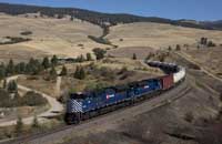 Montana Rail Link SD70ACe 4405 and 4309 are seen loading there ballast train at Spire Rock on the former Homestake Pass Line - 29/09/2022 |  Montana Rail Link SD70ACe 4405 and 4309 are seen leading a loaded Ballast train from Spire Rock to Logan down the remaining portion of the Homestake Pass route at Pipestone - 29/09/2022 |  Montana Rail Link SD70ACe 4405 and 4309 are seen leading a loaded Ballast train from Spire Rock to Logan through Jefferson Canyon - 29/09/2022 |  BNSF C44-9W 4155 is seen leading an eastbound empty coal climbing Mullan Pass at Elliston - 02/10/2022 |