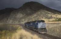 Union Pacific AC44C6M 7307 (former 6,000hp AC6000CW) and ES44AC 5506 are seen leading a loaded IPPX coal train climbing Soilder Summit at Kyune with 4 mid train 'swing' helpers just visible on the S Bend and 2 DPUs on the rear - 06/10/2022 |  nion Pacific AC44C6M 7307 (former 6,000hp AC6000CW) and ES44AC 5506 are seen leading a loaded IPPX coal train at Soilder Summit - 06/10/2022 |  Amtrak P42 138 and P40 824 are seen leading the eastbound 'California Zephyr' #6 at Thompson Springs, Utah running about an hour late - 07/10/2022 |  Union Pacific SD70M 5123 and BNSF ES44C4 4230 are seen the Potash Local from Grand Junction to Potash near Moab west along the mainline at Thompson Sprigns - 07/10/2022 |